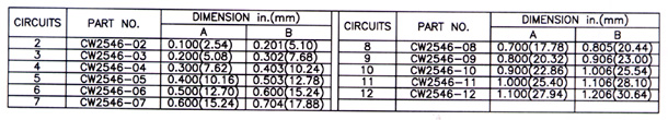 Our Products CW2546 0.100"(2.54mm)Pitch Single Row Headers -Wafer CW2546 Series* Ploes : 2-12* Material : Insulator : NYLON UL 94V-2 Color : Brown* Contact : 0.64mm(.025") Square Pin,Brass, Tin Plated 60u"* Mates With CH251 Series HousingSpecifications* Current Rating : 3A AC, DC* Voltage Rating : 250V AC, DC* Temperature Range : -25℃ ~ +85℃* Insulation Resistance : 1,000MΩ Min.* Withstand Voltage : 1,000 AC / Minute* Applicable PC Board Thickness : .063"(1.6mm) CW2546 Please write down your comment on this product, and click Add to Inquiry List for inquiry Add to Inquiry List Review Inquiry List Back