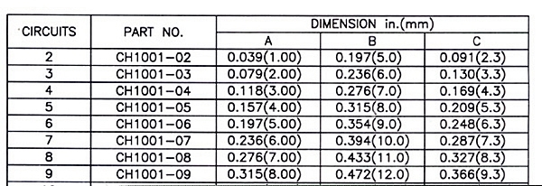 Our Products Wire to Board Connector 1.00mm pitch Wire to Board CH1001/CT1001 0.039" (1.00mm) Pitch -Housing and Terminal CH1001 / CT1001 Series Material: 2-20Finished: PBTP UL94V-0 WhiteSuitable CT1001 series terminal Mates with CW1001 series wafer CH1001 / CT1001 Order / Inquiry Information Please select Items below and click See Catelog for Inquiry. Part No. CH1001 Poles See Catalog Please write down your comment on this product, and click Add to Inquiry List for Inquiry Add to Inquiry List Review Inquiry List Back